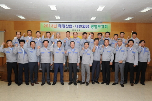 보고회에는 최중재 태광산업 사장을 비롯한 전사 임원과 본사 영업팀장 전원, 공장장 및 공장 주재 팀장과 과장급 이상 엔지니어 등 약 200명이 참석했다. 특히 심재혁 태광그룹 부회장도 참석해 보고회에 대한 총평을 해 회의에 한층 무게가 실렸다. 또 태광산업 협력업체 10여 곳의 대표들도 자리를 함께 해 대내외적으로 어려운 경제적 환경을 극복하고, 위기에서 벗어나 함께 성장하자는 의지를 공유했다.