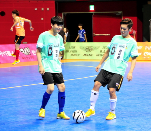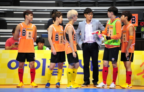 3일 경기도 고양시 고양종합운동장 실내 체육관에서는 MBC 2013 추석 특집 '아이돌 스타 육상 양궁 풋살 선수권대회' 풋살 예선 경기가 열렸다. 예선 1경기로는 B팀과 D팀이 맞붙게 됐다.