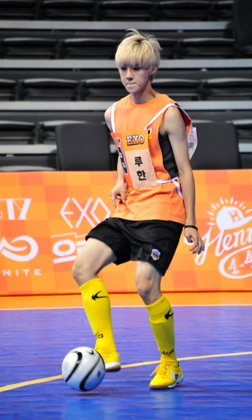 '아육대' 풋살 예선 1경기 첫 골을 터뜨린 주인공 B팀의 엑소 루한 [사진=MBC] |