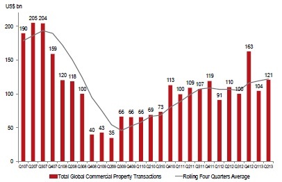 존스랭라살은 올 한 해 거래규모 전망 역시 종전의 1100억 달러에서 1200억 달러로 높여 잡았다. 이 같은 전망치는 금융위기 이전인 2007년과 같은 수준으로 거래량 규모로는 역대 최대로 기록될 예정이다.