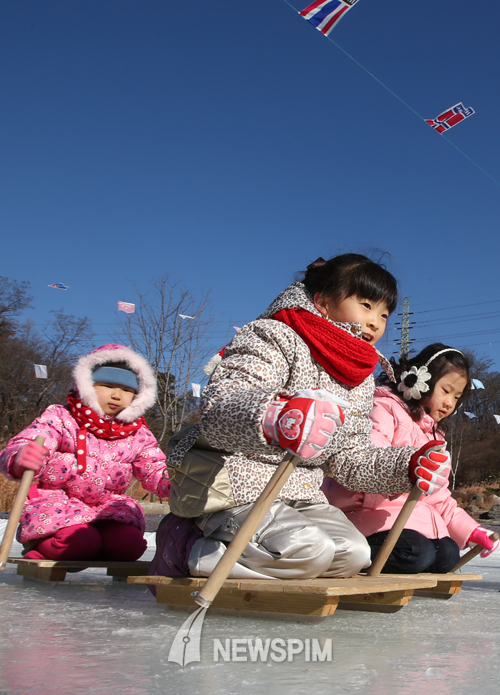 [뉴스핌=김학선 기자] 서울을 비롯한 일부 지역에 올해 들어 첫 한파주의보가 내려진 9일 오후 서울 강동구 둔촌동 일자산 도시농업공원 얼음 썰매장을 찾은 어린이들이 추위도 아랑곳하지 않은 채 썰매를 타고 있다.