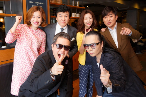 | 11일 서울 투썸플레이스 광화문점에서 진행된 tvN `근대가요사 방자전` 기자간담회에 방송인 박미선, 주병진, 가수 김완선, 변진섭, 정원관, 김태원(위부터)이 참석해 포즈를 취하고 있다. [사진=CJ E&M] |
