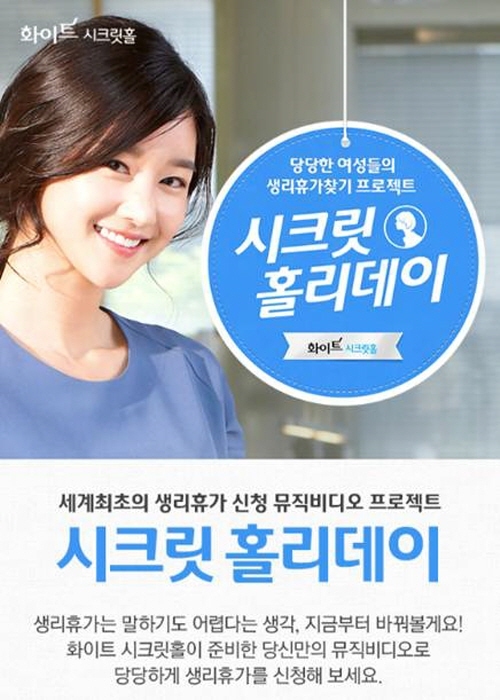 [뉴스핌=이수호 기자] 유한킴벌리 여성용품 브랜드 화이트는 여성들의 당당한 생리휴가를 권장하는 '화이트 시크릿 홀리데이 캠페인'을 시행한다고 20일 밝혔다.