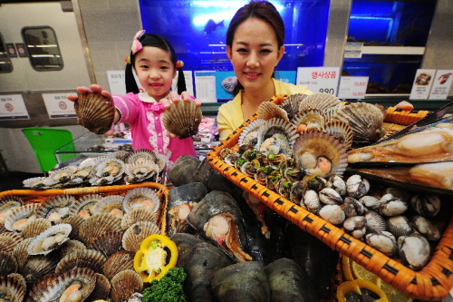 [뉴스핌=이연춘 기자] 봄조개 제철을 맞아 이마트가 키조개(1980원/조개살 1마리), 가리비(990원/100g), 왕꼬막(990원/100g) 등을 판매한다.