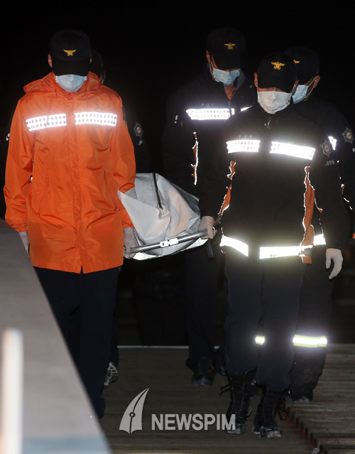 [뉴스핌=김학선 기자] 여객선 세월호 침몰 나흘째인 19일 새벽 진도 팽목항으로 29번째 사망자의 시신이 옮겨지고 있다.