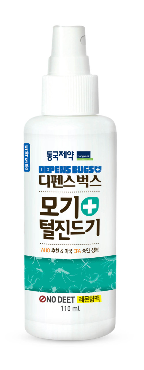 ‘디펜스 벅스’는 강한 향의 기존 해충 기피제와 달리 향긋한 레몬향이며, 피부 끈적임이나 옷 얼룩 등이 없다. 50mL와 110mL 2가지 용량의 스프레이 타입이 있으며 약국에서 구입 가능하다.