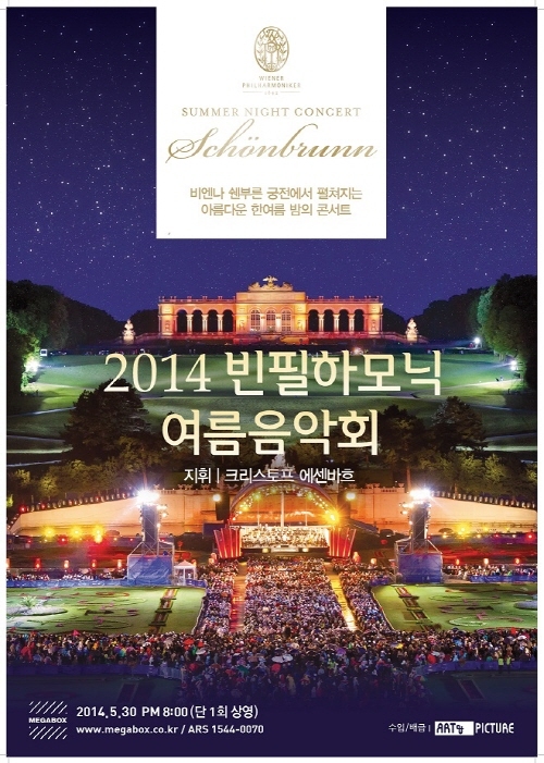 2014 빈필하모닉 여름음악회는 메가박스 코엑스, 센트럴, 목동, 동대문, 해운대, 킨텍스, 광주 등 7개 지점에서 상영된다. 가격은 일반3만원, 청소년 1만5000원, VIP는 15% 할인된다.