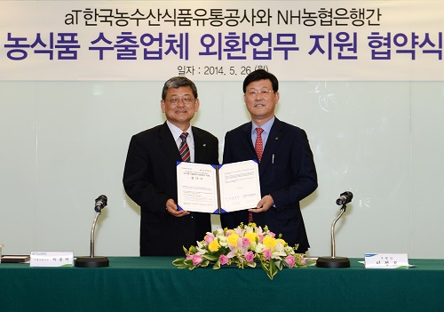 [뉴스핌=노희준 기자] NH농협은행은 한국농수산식품유통공사와 '농식품 수출업체 외환업무 지원'을 위한 협약을 체결했다고 26일 밝혔다.