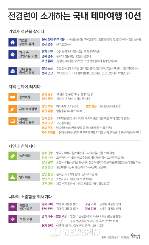 [뉴스핌=송주오 기자] 전국경제인연합회(이하 전경련)가 내수활성화와 국내 산업을 경험할 수 있는 국내 테마여행지를 선정, 추천했다.