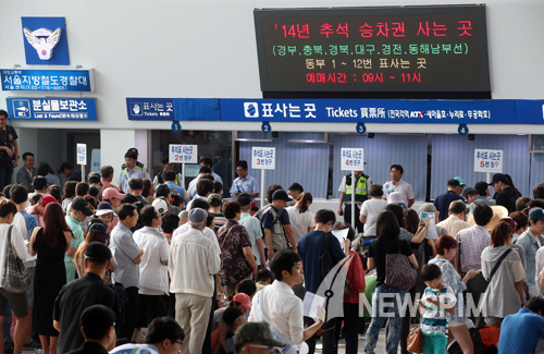 [뉴스핌 포토] 추석 승차권을 향한 줄