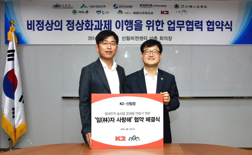 이번 업무협약은 K2와 산림청이 산림환경보호에 대한 사회적 관심과 국민 실천의식을 함양시키기 위한 산림환경 보호 캠페인인 ‘임(林)자 사랑해’ 캠페인을 함께 전개해 나가기 위해 추진됐다.
