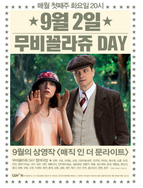 CGV무비꼴라쥬 극장팀 박지예 팀장은 “통찰력이 돋보이는 ‘매직 인 더 문라이트’는 우디 앨런이 고령임에도 불구하고 여전히 우리 시대의 흥미로운 이야기꾼임을 확인시켜줬다”며 “보다 많은 관객이 우디 앨런 영화의 진수를 경험하기 바란다”라고 선정 소감을 밝혔다.