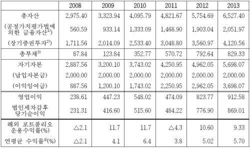 이 차장은 "CIC의 투자운용 동향을 보면 2013년에도 외부 위탁을 통한 주식투자 비중을 확대를 계속했다"며 "현금성 자산 비중이 감소하고 외부 위탁 비중이 67.2%까지 상승한 점도 주식투자 비중 확대 때문인 것으로 보인다"고 말했다.