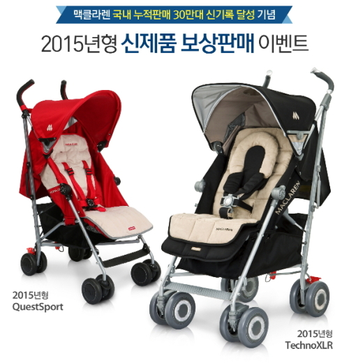 [뉴스핌=이연춘 기자] 50년 전통의 영국 명품 유모차 브랜드 '맥클라렌(Maclaren)'은 국내 최초로 유모차 누적 판매량 30만대 달성을 기념하며 다음달 31일까지 보상판매 이벤트를 실시한다고 15일 밝혔다.