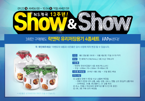 [뉴스핌=최주은 기자] NS홈쇼핑(대표이사 도상철)은 개국 13주년을 맞이해 ‘쇼앤쇼’ 프로모션 이벤트를 실시한다고 22일 밝혔다.