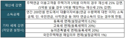 재산세 25% 감면…저당권 설정시 각종 세금 면제