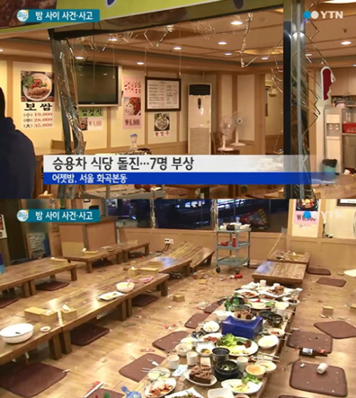 [뉴스핌=대중문화부] 승용차가 식당으로 돌진하는 사고로 7명이 부상을 입었다.