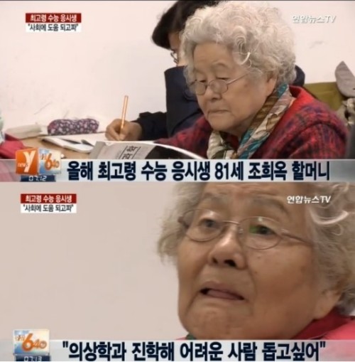 최고령 수능 응시생 조희옥 할머니는 한 매체와의 인터뷰에서 "배우지 않는 사람은 밤길 걷는 것과 마찬가지다. 죽을 때까지 배워야지. 행복이라는게 마음먹기에 달린 것"이라고 말해 눈길을 끌었다.