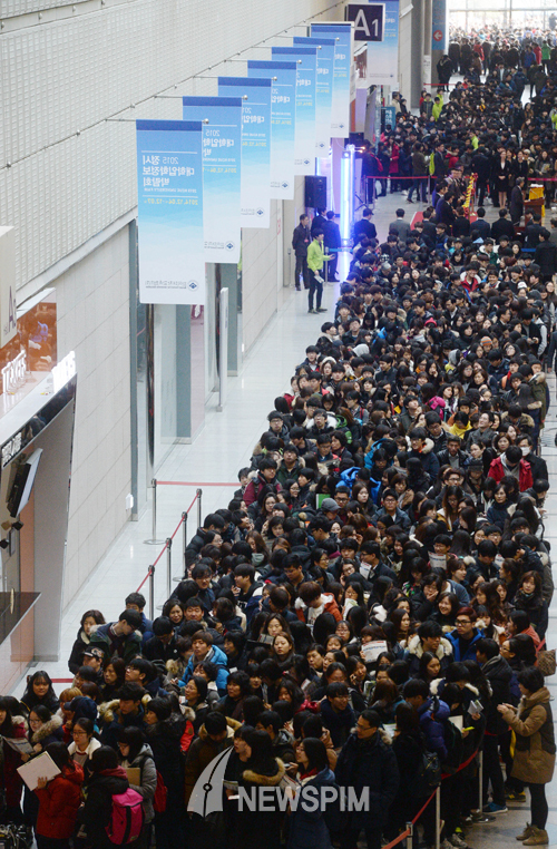 [뉴스핌=김학선 기자] 4일 서울 강남구 코엑스에서 한국대학교육협의회 주최로 열린 '2015학년도 정시 대학입학정보박람회'에 많은 학생들이 몰려 인산인해를 이루고 있다.