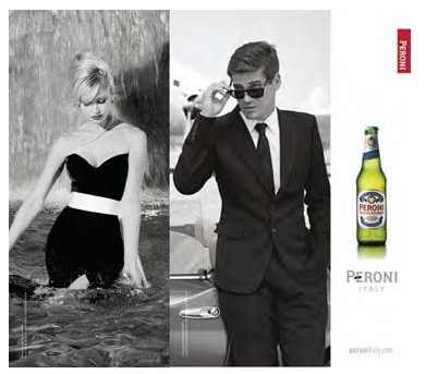 페로니는 맥주 브랜드로서는 독특하게 ‘이탈리아 스타일을 담은 맥주’ (Italian Style In A Bottle)란 슬로건 아래 ‘스타일 아이콘’으로 자리매김해 온 브랜드로서 노력하지 않아도 세련된 이미지가 묻어나는 브랜드이다.