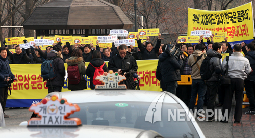 서울시택시운송사업조합·서울시개인택시운송사업조합, 우버 항의집회 / 김학선 기자