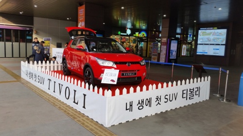 쌍용차 관계자는 "기존 30대 후반이 타깃층이었던 쌍용차의 차량과 달리 티볼리는 주요 타깃층을 젊은층인 20대 후반에서 30대 중반으로 잡았다"며 "유동인구가 많고 젊은 세대가 많이 다니는 공간을 십분 활용해 전시 차량 효과를 톡톡히 누릴 것"이라고 말했다.