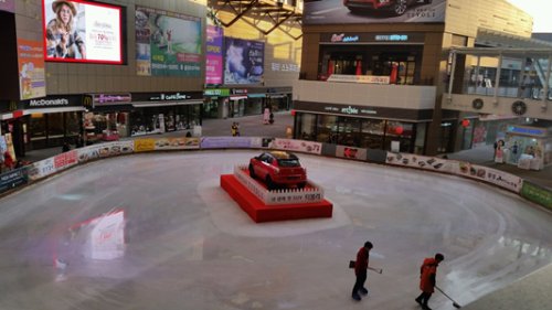 | <사진=일산 원마운트 복합쇼핑몰 내 아이스링크장에 전시되어 있는 쌍용차 `티볼리`> |