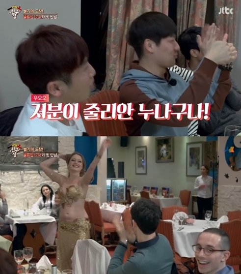이날 '내 친구의 집은 어디인가' 멤버들은 벨기에 수도 부뤼셀에 도착해 늦은 저녁 식사를 했다. 이때 요란한 음악과 함께 줄리안의 누나가 파격적인 의상을 입은 벨리댄서로 등장, 주변의 환호를 한몸에 받았다.
