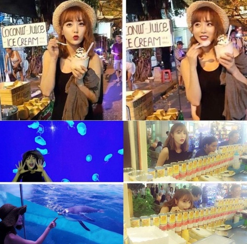 또 홍진영은 태국의 수족관에 놀러간 인증샷과 커피와 바나나팬케이크를 먹는 모습, 장난감을 가지고 노는 짧은 영상, 아이스크림을 먹으며 태국의 거리를 돌아다니는 사진 등을 게재해 태국에서 보냈던 즐거웠던 시간을 추억했다.