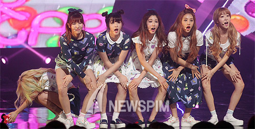 [뉴스핌=이형석 기자] 그룹 라붐이 9일 오후 서울 마포구 CJ E&M 사옥에서 열린 엠카운트다운에서 열정적인 무대를 선보이고 있다.