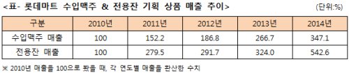 2일 롯데마트에 따르면 최근 5년 동안 수입 맥주 매출이 3배 넘게 오를 때 수입 맥주 전용잔 기획세트 매출은 5배 넘게 증가했다.