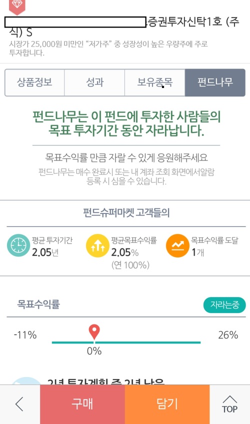 | 투자자간 수익률 자산관리 공유 플랫폼 '펀드나무' <사진=펀드슈퍼마켓 모바일 앱> |