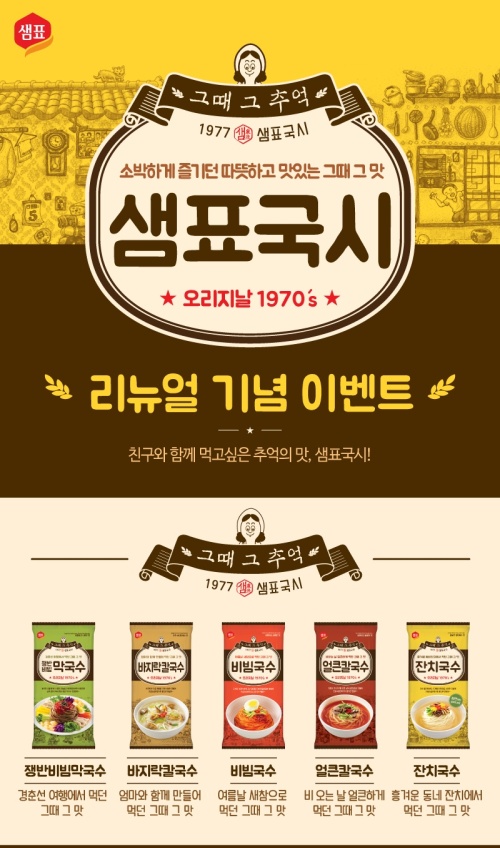 [뉴스핌=이진성 기자] 60년 발효명가 샘표식품이 ‘그때 그 추억’ 국수 5종 리뉴얼 출시를 기념해 특별한 이벤트를 개최한다고 18일 밝혔다.