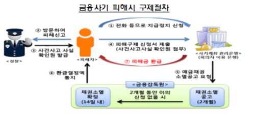 금융사기 피해를 입은 경우에는 즉시 사기범의 계좌에 대한 지급정지 조치를 취해야한다.