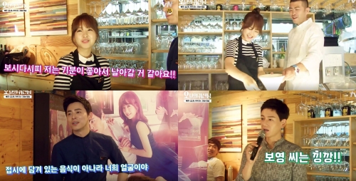 이날 출연자를 음식으로 표현해달라는 시청자의 질문에 각양각색의 답변이 쏟아졌다. 임주환은 조정석과의 오래된 인연을 언급하며 소고기 뭇국 같은 남자라 했고 박보영은 낑깡(금귤) 같다고 해 모두의 공감을 샀다.