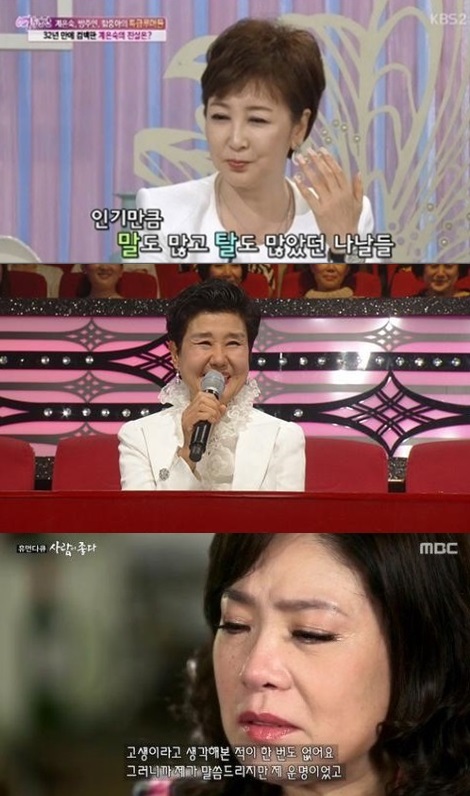 | ‘아궁이’ 계은숙·김지애·김연자, 트로트의 여왕 ‘파란만장’ 인생스토리 <사진=여유만만, 불후의 명곡, 사람이 좋다 방송 캡처> |