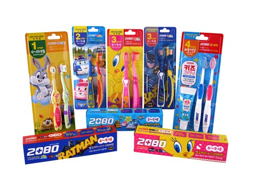 2080 키즈칫솔은 성장단계별 치아특성에 맞춰 칫솔 헤드 크기와 칫솔모 모양, 구조 등을 설계했다. 칫솔은 대한구강보건협회가 추천하는 제품이다.