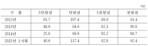 최근 3년간 지폐 권종별 환수율 <자료제공=한국은행> |