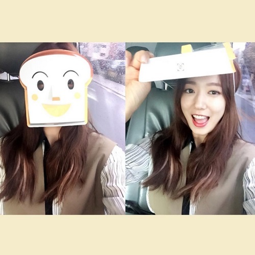 공개된 사진 속 박신혜는 식빵맨 가면을 쓰고 있다. 또 다른 사진에서 박신혜는 식빵맨 가면을 들고 환하게 웃고 있다.