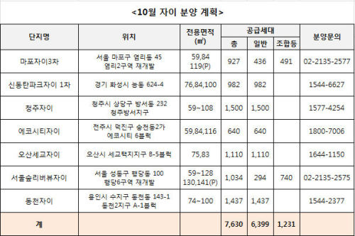 [뉴스핌=이동훈 기자] GS건설은 오는 10월 전국에서 7개 단지, 총 7630가구(일반 6399가구)를 분양한다고 21일 밝혔다.