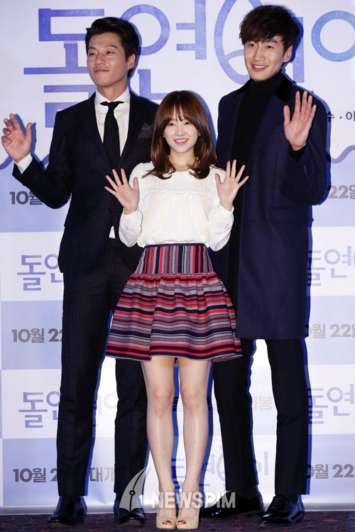 [뉴스핌=김학선 기자] 배우 이천희, 박보영, 이광수가 14일 오후 서울 성동구 왕십리CGV에서 열린 영화 '돌연변이' 언론·배급시사회에서 포즈를 취하고 있다.
