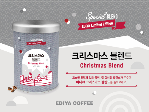 원두 케이스의 디자인은 이디야의 겨울시즌 슬로건인 ‘윈터 빌리지 인 이디야(Winter Village in EDIYA)’를 주제로 눈 내리는 겨울 마을을 표현했다. 금속 케이스에 담긴 ‘크리스마스 블렌드’는 크리스마스 시즌 동안 한정 판매된다. 가격은 100g 1만3000원이다.