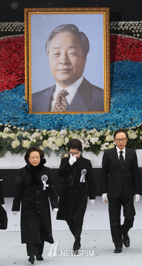 [뉴스핌=특별취재팀] 고(故) 김영삼 전 대통령 국가장의 영결식이 국회에서 엄숙히 거행됐다. 최다선인 9선 의원의 마지막 국회 등원에 하늘도 온통 잿빛얼굴을 하고는 하얀 눈물을 펑펑 흘려 슬픔을 더했다.
