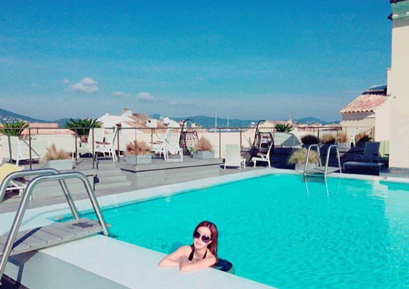 공개된 사진 속 임수향은 수영장 안에서 포즈를 취하고 있다. 특히 검정색 수영복과 대비되는 임수향의 우유빛깔 피부가 시선을 사로잡는다.
