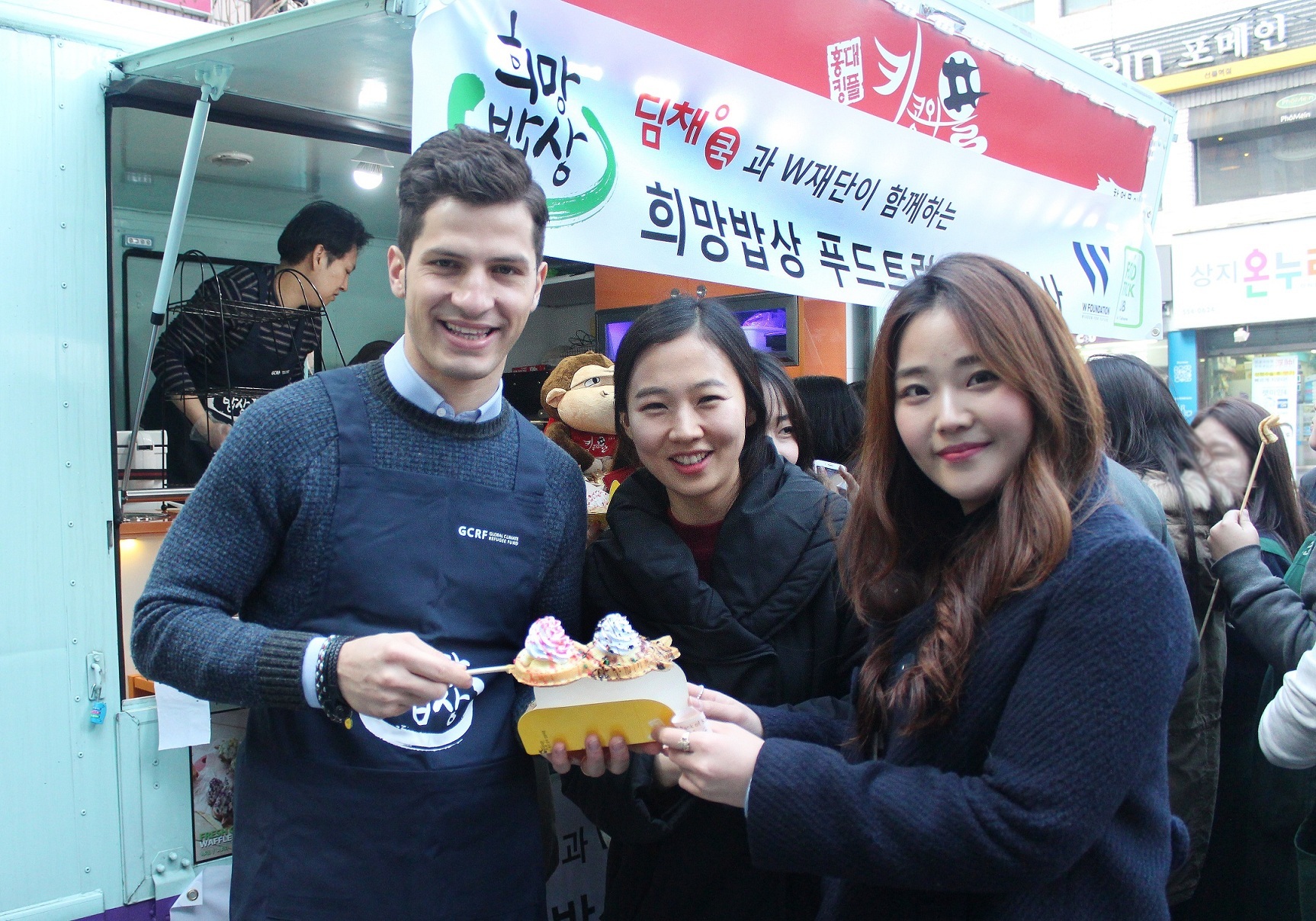 희망밥상 푸드트럭은 국제구호기관인 'W-재단'의 주관으로 지난 10월부터 이어져 온 행사다. 참석자들은 국내외 취약계층을 돕기 위해 일반 시민들을 대상으로 음식을 나눠주고 기부금을 받았다.