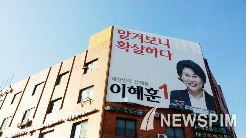 이혜훈 후보의 선거사무실은 서초구 잠원동 반포쇼핑타운 8동에 위치해 있었다. 상가 위쪽에는 '맡겨보니 확실하다'는 문구와 이 후보의 활짝 웃는 모습이 담긴 현수막이 걸려 있었다. 30년 넘게 잠원동을 지키고 있어 시민들에게 익숙한 이 상가와 재선의원으로 유권자에게 익숙한 이 후보가 잘 어울리는 듯 했다.