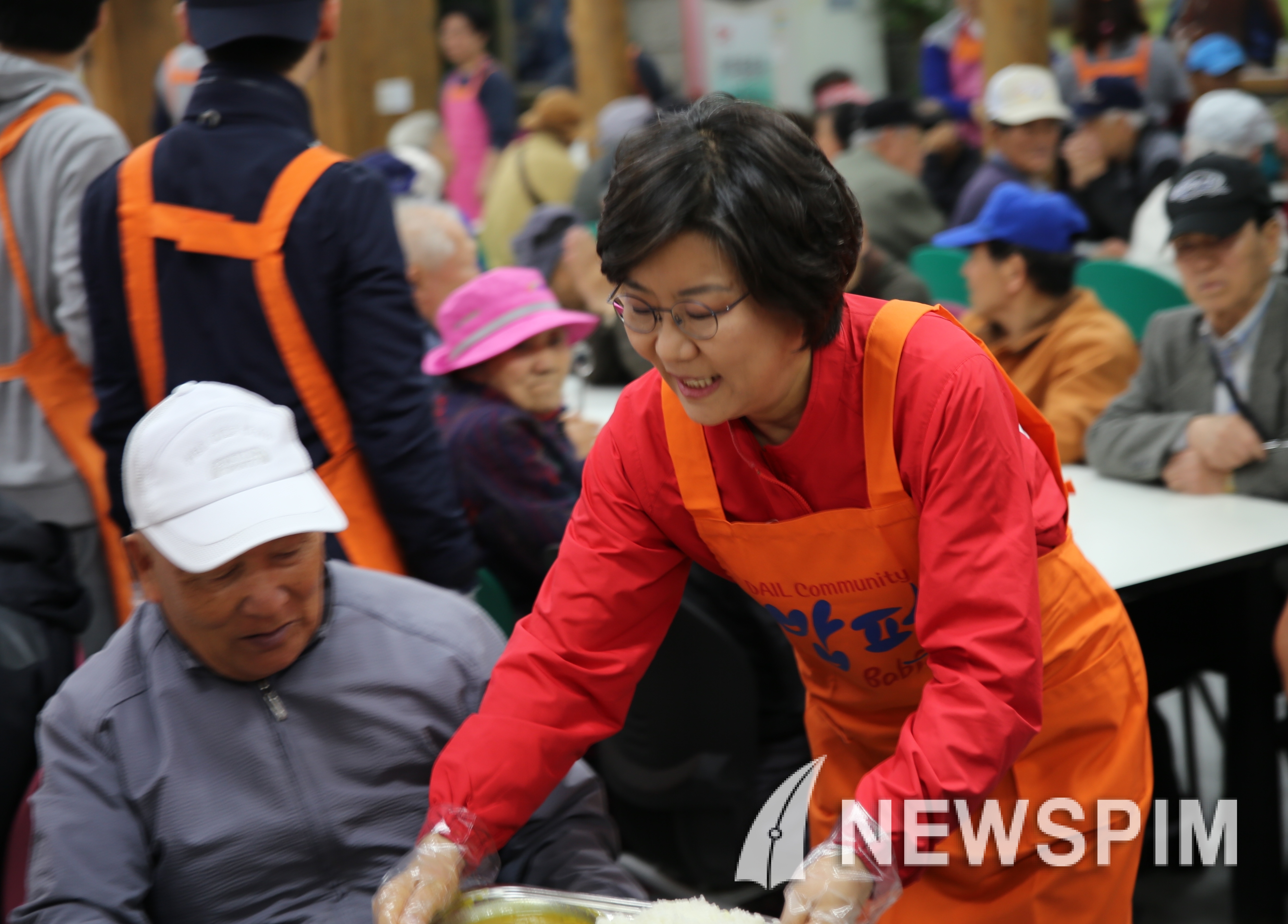 | 밥퍼 봉사활동 중인 이혜훈 후보 <사진=이혜훈 경선캠프> |