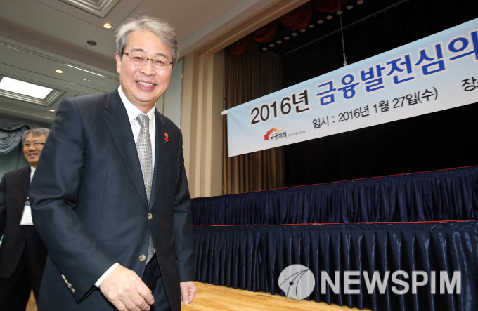 [뉴스핌=김학선 기자] 임종룡 금융위원장이 27일 서울 중구 예금보험공사 대강당에서 열린 2016년 금융발전심의회 제1차 전체회의에 참석하고 있다.