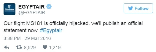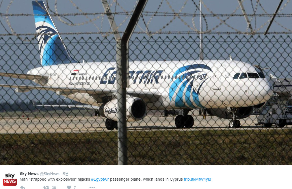 | 납치된 이집트항공 비행기 <사진=스카이뉴스 트위터> |