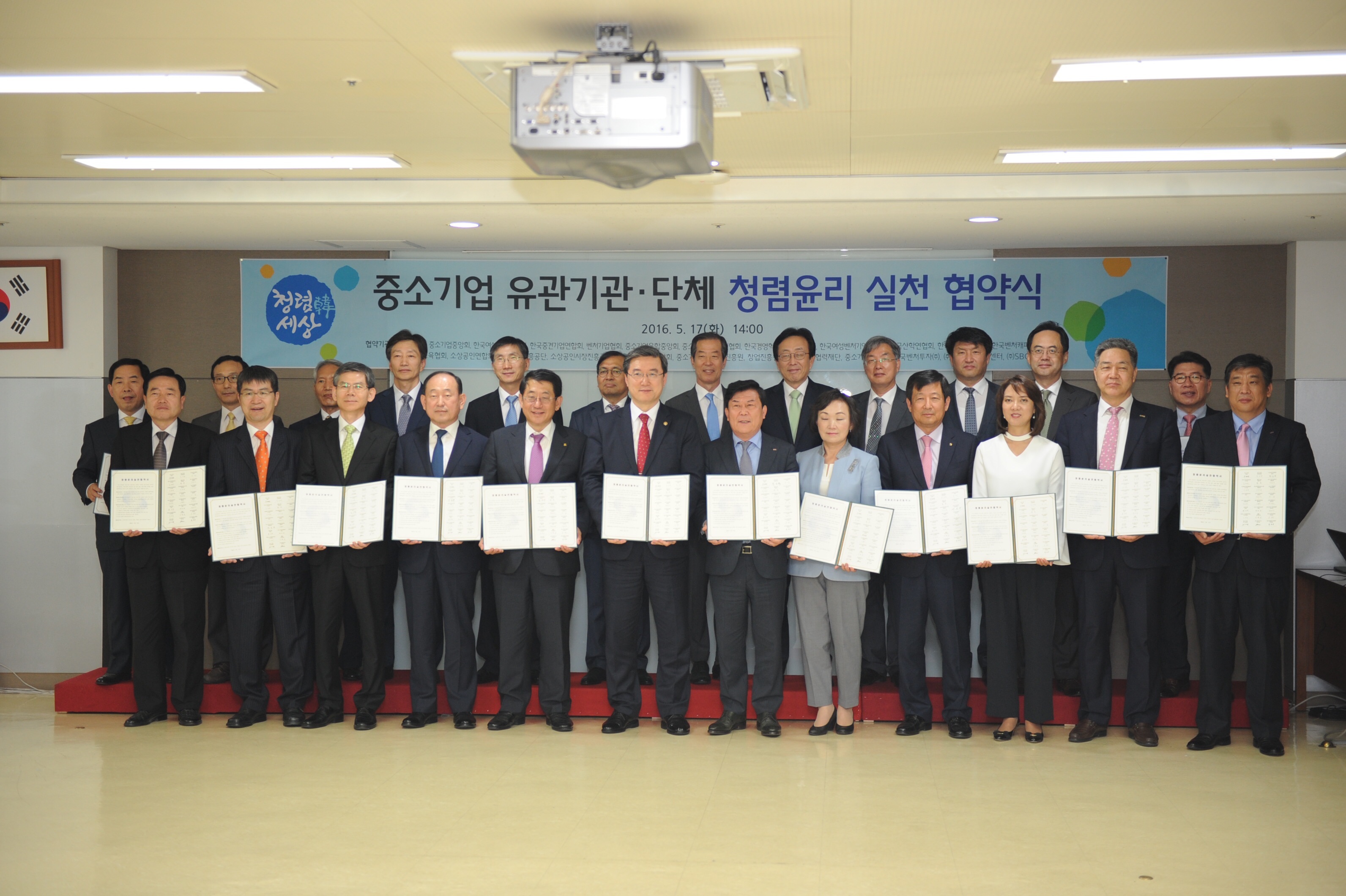 [뉴스핌=한태희 기자] 중소기업청은 중소기업중앙회 등 23개 중소기업 유관기관·단체장과 함께 중소기업 분야 반부패·청렴문화 확산을 위한 '청렴․윤리실천협약'을 맺었다고 17일 밝혔다.
